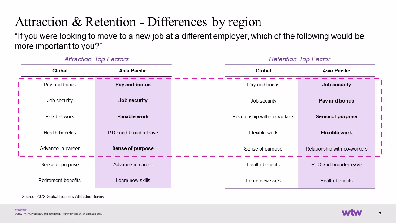 Every region, with its unique socio-economic fabric, moulds the aspirations and priorities of its workforce. For instance, while monetary compensation might be the global gold standard, regions like the Asia Pacific could emphasise more on job stability or a harmonious work-life equilibrium. HR professionals must decode these regional nuances. By customising compensation structures that echo regional sentiments, companies can bolster employee satisfaction and minimise attrition.